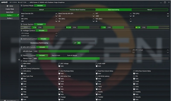 AMD 锐龙处理器搭载 Radeon 显卡,也可以对集显的核心和显存进行超频以获得更高的游戏性能。 可以根据喜欢的游戏进行性能调优,然后保存配置,这样以后就能快速调取并应用此前优化过的设置。