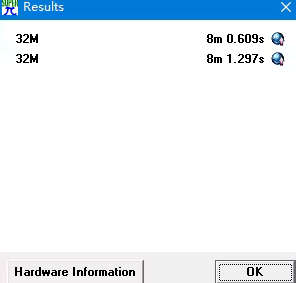 弹出Hrdward Information对话框 (对话框信息不显示了),点OK转回Super PI软件主界面。