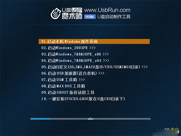 可以把USM安装到本机硬盘启动运行,当本机系统宕机时,用于启动应急处理。