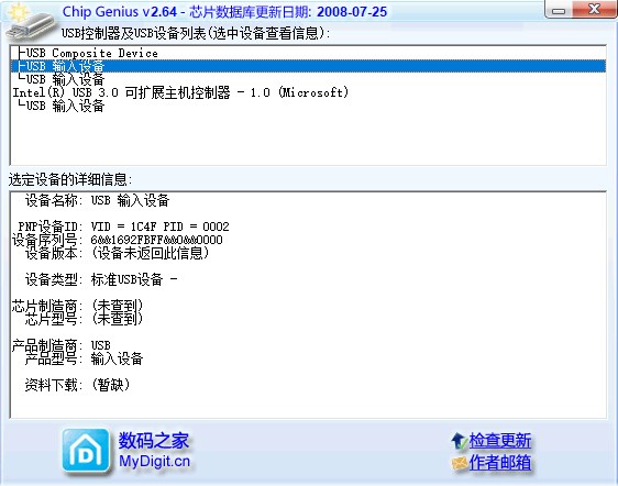 6、设备检测功能,电脑上已经连接到的USB设备可以直接在这里查看,可以读取设备的信息