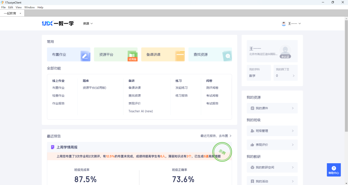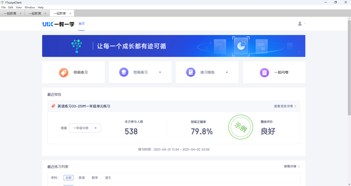 一起作业是以大数据为驱动的学校教育平台,同步学校教学进度,覆盖练习、评测等教育场景,通过大数据和人工智能等教育科技手段,帮助老师减负增效、学生培养学习兴趣、家长掌握学情,让学习成为美好体验。