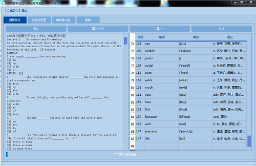 词频助手官方版可以英语单词文本中单词个数统计,标注 音标 和 翻译,并支持导出为Excel文件。支持点击统计的单词,查看单词在文本中的分布。用背景色标注显示。支持自己添加过滤词。支持对比两个Excel文件第一列单词的异同,并导出对比情况,方便查看两分文本单词的差异。对于英语单词进行词形还原处理。避免went和gone统计程不同的单词。 支持单词批量翻译功能,依据《牛津英汉词典》进行翻译。