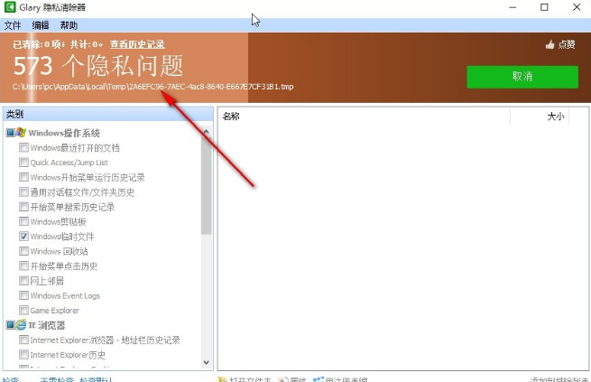 1、进入到软件主界面之后,会自动开始扫描电脑中的隐私问题,我们在界面中可以看到扫描进度,等待扫描完成即可。