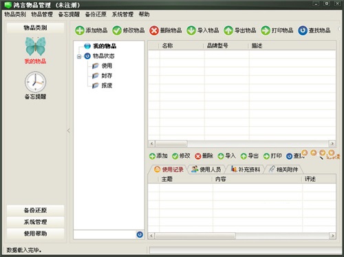 鸿言物品管理软件官方版小巧轻量,速度飞快,兼容性好,可发挥独特的作用。有了它,你就可以非常轻松是进行日常的业务管理。可以灵活设置物品类别、物品状态,记录物品的型号、来源、价格、存放位置、质保信息等等。可以对物品的使用信息、使用人员进行随时记录,可以添加补充资料、相关附件,以便扩充物品的相关信息。
