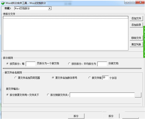 word批量拆分合并工具官方版不仅功能强大,而且实用性强、易于上手,十分实用和方便。可以将一个文档拆分为多个word文档,也可将多个word文档合并为一个word文档,而且还支持批量自动重命名,非常的实用。如果您办公时遇到文档拆分或合并的问题,这款软件可以轻松解决。