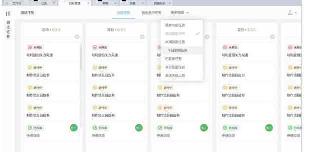 通过目标管理,提升BPM系统的管理绩效的分析能力。创建计划任务,新建不同的分组,添加任务,设置对应的负责人员,参与人员,完成时间等,可上传附件、图片意见等。