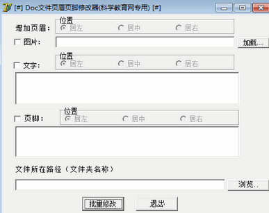 DOC文件页眉页脚批量修改器官方版是一款功能强大,界面清晰的文档修改软件,这款软件有着简捷的操作方法和精致的操作界面。可以在你们今日之后,就可以页眉页脚批量,获得满意的效果。能够批量修改WORD文件的页脚和页眉信息。添加文件夹批量进行修改。