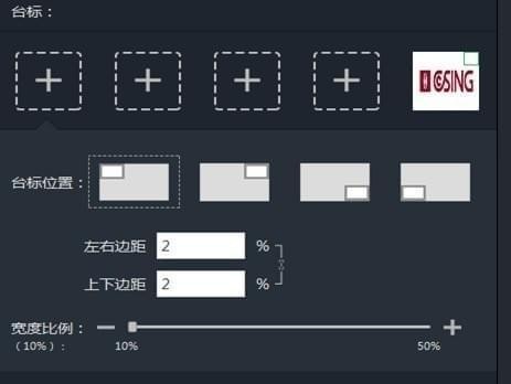 支持一次上传多个台标(机构logo),灵活选择台标显示位置的大小(视频区左上角、右上角、左下角、右下角)。用户选择需要添加的台标以及台标展现位置后,制作慕课视频资源时,台标(机构logo)信息会自动添加到视频文件。