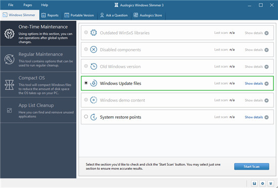 即使在经常进行垃圾清理后,您的Windows仍可能有数百个不需要的系统文件,应用程序和其他可能会影响您PC的项目。旧的系统还原点,Windows Update文件,过时的Windows库或禁用的系统组件等可能会占用大量磁盘空间并降低性能。使用Auslogics Windows Slimmer进行检查,并为您的操作系统进行适当的深度清理