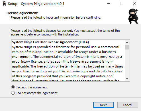 1、下载完成后解压缩文件,打开解压得到的文件内名为“ninja-setup-4.0.1.exe”的可运行程序文件,下一步;2、同意安装协议,下一步;
