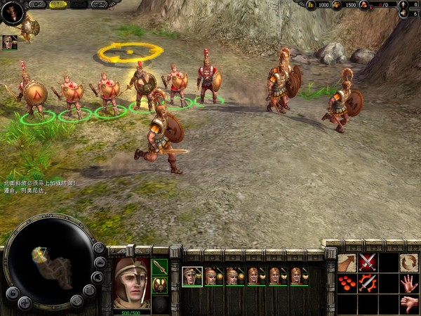 这关开始上面一点有一堆敌人在上面,用马车来回碾压,减少部队损失。然后直接向前杀那些没有在劳动的希腊人,不然等下就会杀你咯。这时可以看到有两个出口(山上和山谷),派多点农民去开始时那里拣武器,装备自己,集结部队弄一小部队放下面的入口,大部队往山上的那个入口清人,山谷多弄点远程攻击的士兵,清山谷两边的人,敌人如果有投石车送上门,别毁坏,自己占领了用,对付山谷两边人和弓手很管用。山上敌人的建筑和敌人全部消灭并占领金矿,部队堵在山上出口处,弄几个陷阱。农民要跟上,拼命拣武器。把山下两个入口把关好后,就派人去点燃右上方的树,敌人粮草不够,开始掉血(沿途有很多石头陷阱和弓手,要特别小心,最好派一个骑兵去,有敌人就引到家门口打)。过一段时间后敌人血只剩一点咯,就可以反攻咯,在左下方有个贿赂的支线任务,给5000黄金开城门,不管做不做,用处不大。用抢的投石车直接攻城破门,自己烧它老家