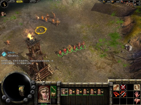 这关还是比较容易的,先到前方河滩上,小心有敌人,然后建船厂,造船到敌人的围栏内的沙滩上,别跟那些箭塔敌人纠缠,直接向左边绕上去,路上有零星的敌人,再向右边走的途中可以看到一大堆敌人在那里,别理他们,一直向右可以找到一个攻城锤,利用它攻破敌人还没有建好的围栏出去,与右下方的部队汇合,把他们全部组队,浩浩荡荡开进去杀个刚才看到的那堆敌人。
