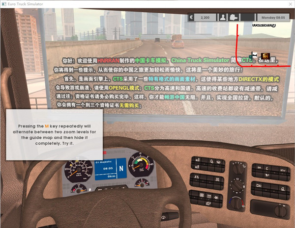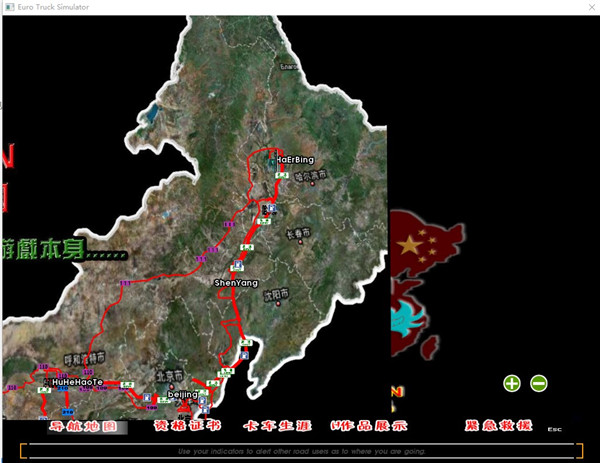 7、开车右拐,按M键,1次为右反光镜,2次或3次为卫星导航图,注意地图上有中国电信(福州为中国石油、瑞丽为伊利)字样的地方,左拐,进去,↓处按enter键,选择送货地点,货物。
