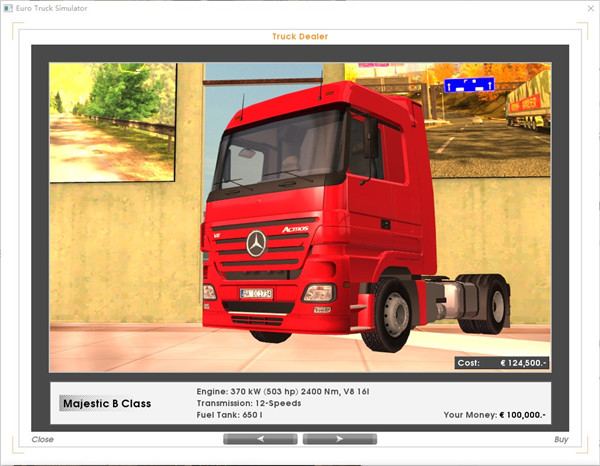 6、选择城市如济南,点开始,用← →选卡车价格,钱数必须低于手中现有钱数。