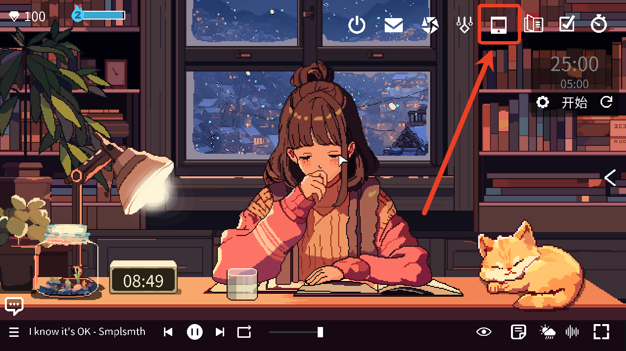 4、游戏主要的推动是番茄钟,可以通过打开番茄钟并挂机(或者干活)来获得钻石,钻石相当于货币,其他的东西(装饰,饮料等)都需要通过钻石来购买。