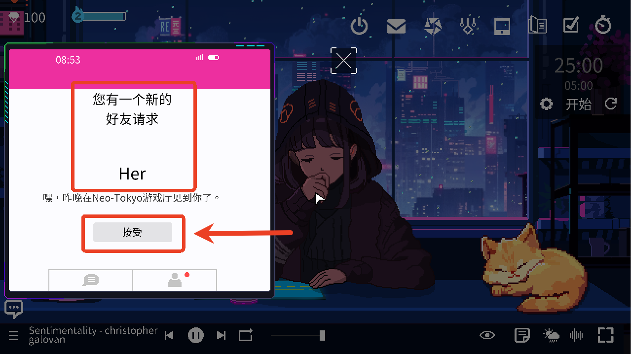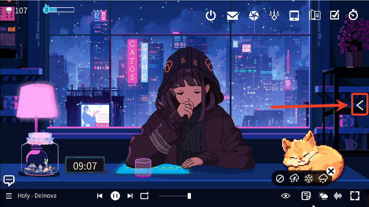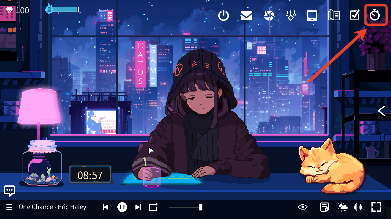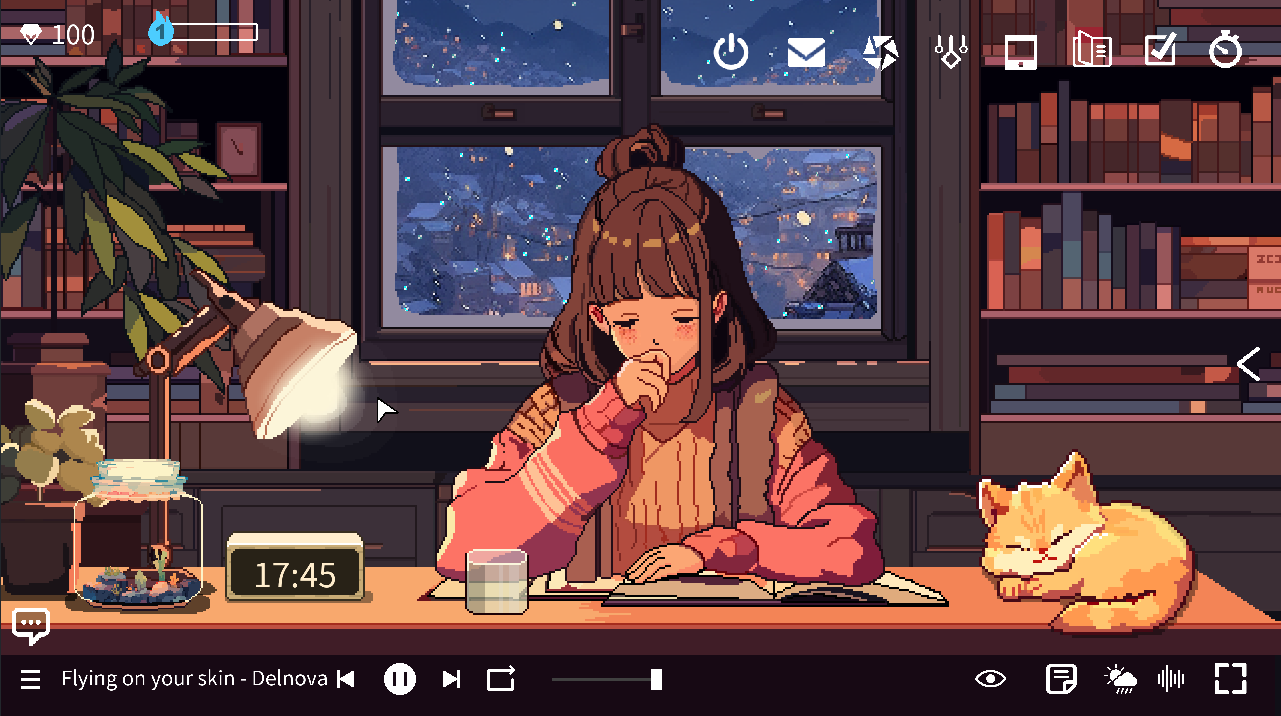 心流小筑(Chill Pulse)是一款像素风格的番茄钟专注游戏,涵盖了大部分专注游戏都有的功能,如待办事项、番茄钟、白噪音等等,不仅如此,玩家还可以制作各种不同的饮料给桌前的女生喝,能更换女生的耳环以及耳机,养各种品种和颜色的小鱼,小鱼长大后还可以售卖获得钻石,或者选择喜欢的萌宠趴在桌子上,有猫咪、小狗、鸭子以及乌龟。