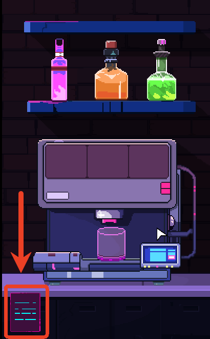 7、点击右边箭头可以打开饮料机,下方纸条是配料表,每当你首次发现一杯饮料时候都会解锁配方。
