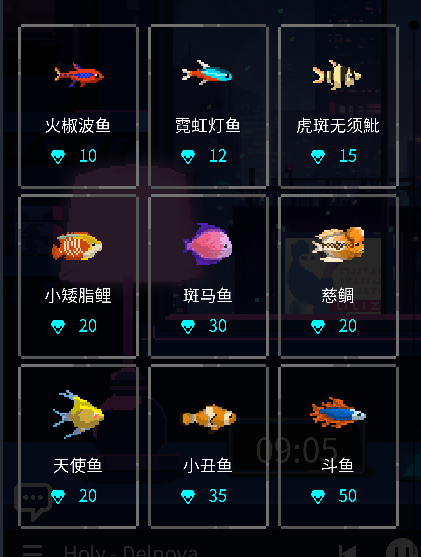 6、在获得了一定的钻石后,可以购买鱼,鱼可以在一段时间后在鱼缸里生成很多钻石,也可以在长大了之后卖掉换得更多钻石。