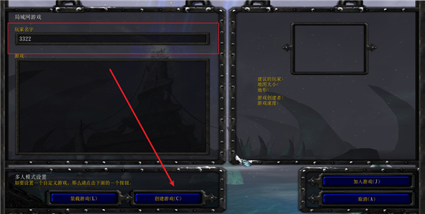 2、输入自己的玩家名,然后点击创建游戏