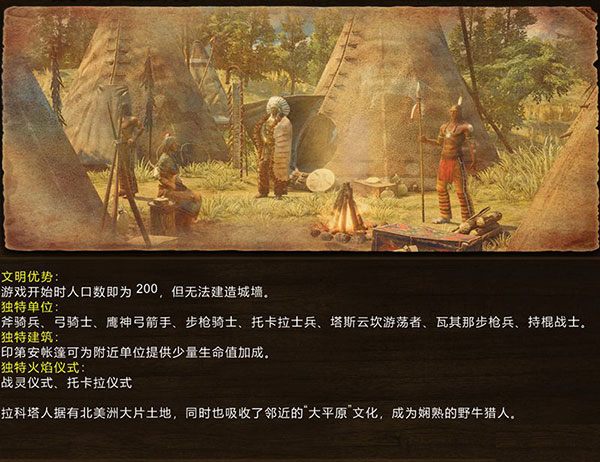 独特部队:鹰神弓兵、持棍战士、斧骑兵、狼骑兵、弓骑兵、步枪骑兵、塔斯云坎徘徊者(隐身近战骑兵)、瓦齐纳步枪手、战士(火舞祭典)