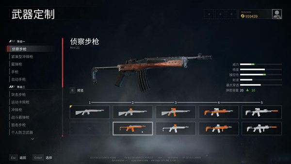 7、以侦察步枪为例,可以看到升级解锁后会增加很多模组,以橙色显示在枪械图标上。瞄准镜、消音/制退器、护木、握把、弹匣、枪托、机匣的改装都很丰富。