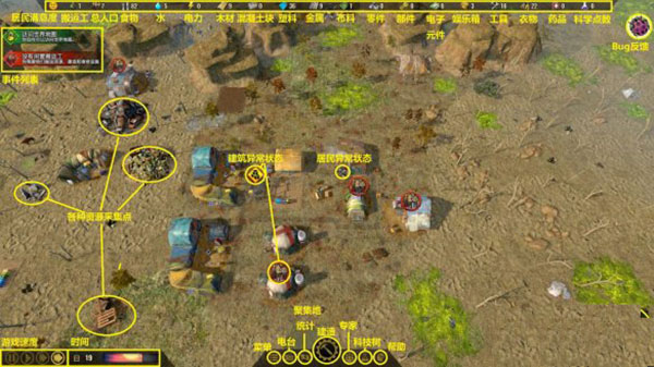 3、食物:显示当前储备的食物数量,是居民生活的必备资源。食物种类的多样性对居民非常重要。