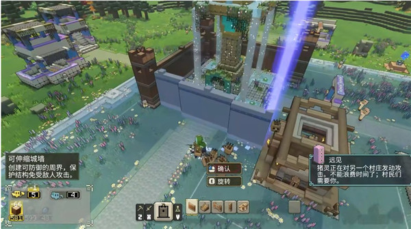 4、当一座村庄被摧毁后,你可以选择修复它。一座木匠小屋可以逐渐修复一定范围内的建筑,一道城墙可以作为村庄的防御。这些建筑不需要玩家像我的世界那样一个方块一个方块搭建起来,而是需要用各种方式来收集这些建筑的配方。