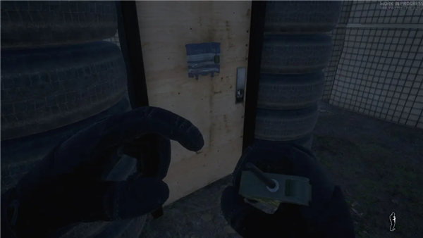 3、突破是进门的另一个选择。按住【4】键选择炸药。将其放在门上,然后【点击】鼠标,用手中的起爆器引爆炸药。