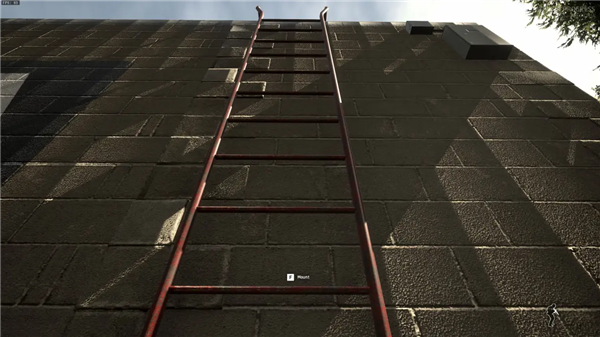 5、当你接近可用的梯子时,你会看到在屏幕底部出现一个图标。按梯子上的[F]键连接,然后开始向上或向下攀爬。