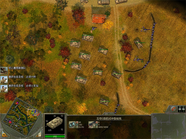 这关可就简单了,咱们有三辆二号F轻型坦克。坦克可不怕这些步兵,直接开过去,砸了敌人的据点!不过呢,咱也不能盲目冲过去,得保持距离,给敌人点儿威慑力,别让他们有反击的机会。坦克这种大家伙,攻击力强,但移动慢,得好好利用它的火力,避免被敌人近距离包围。