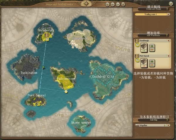 5、南边的采石岛屿(Stone quarry)闹饥荒了,叫你送10t食物去,用船装10t食物送去,可以换得理查德老爷要的石料,把石头运到罗斯伯格的岛屿Cathdral City;