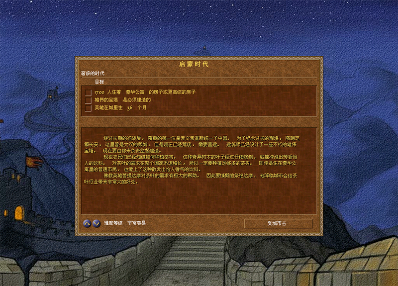 3、随着战役的深入,游戏难度也逐渐增大。游戏的目标(达到指定商品产量,征服敌对城市,达到指定人口数量,建造奇观等)也会越来越难完成。玩家必须细心的管理进出口,平衡财政预算,满足人民需求,维持足够数量的军队。