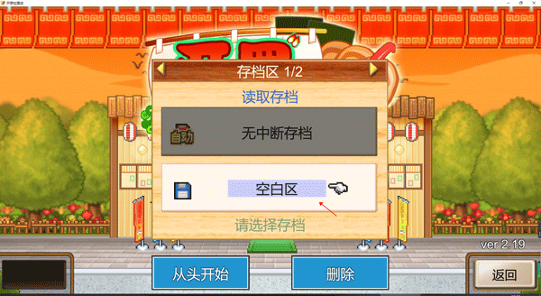 4、页面这时候会弹出一个存档区,这个功能就是如果想保存当前游戏进度时,就可以使用这个功能了,点击空白区来从头开始。