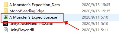 2、下载完成后进行解压,然后是得到以下文件类型,双击“A Monster's Expedition.exe”应用程序,便可免安装直接进入游戏。