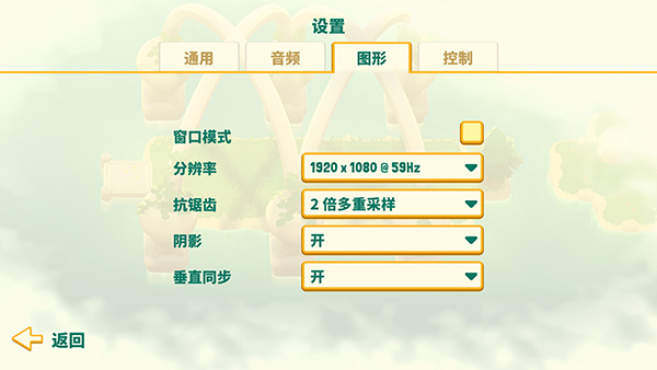4、音频可修改游戏音效和音量,图形可根据玩家的选择调整是否为窗口模式,或是窗口模式的分辨率大小以及坑锯齿、阴影和垂直同步的功能开启/关闭。