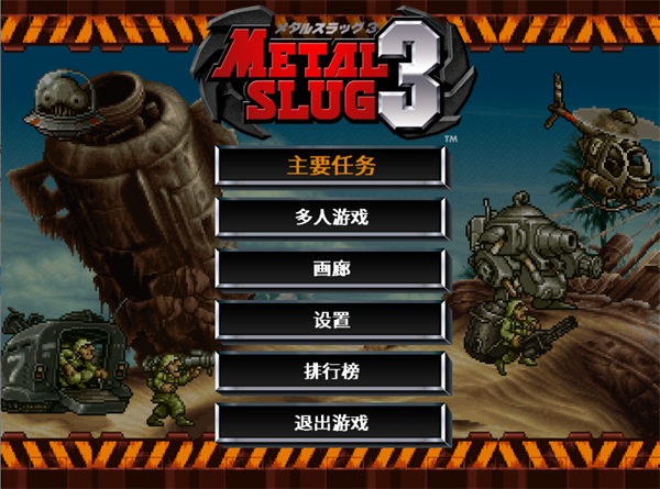 合金弹头3(METAL SLUG 3)是日本SNK公司推出的经典街机游戏 《合金弹头》系列的第三部作品,本游戏继承了《合金弹头》的优点和特色,是该系列难度最高的一款游戏,也是该系列最优质的一款。合金弹头3游戏共有5关,游戏风格和玩法很接近飞行射击,除了传统的动作射击版面,游戏还增加了水下射击版、横版飞行射击和纵版飞行玩法,是SNK标志性的2D跑枪动作射击游戏系列中的杰作,至今仍因其复杂的点像素图形和简单直观的游戏控制而吸引着全球数百万粉丝!欢迎下载畅玩!