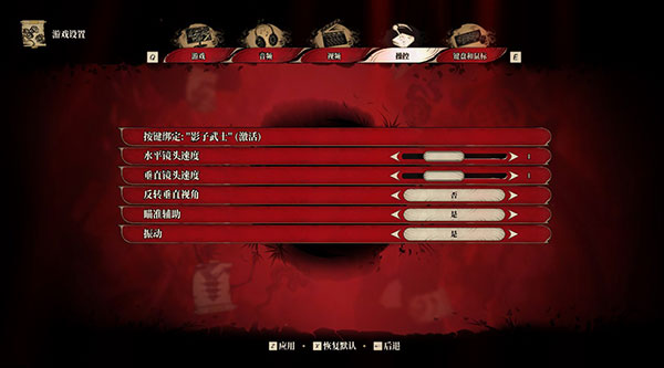 8、“操作”设置界面,可设置水平镜头速度、垂直镜头速度、瞄准辅助等