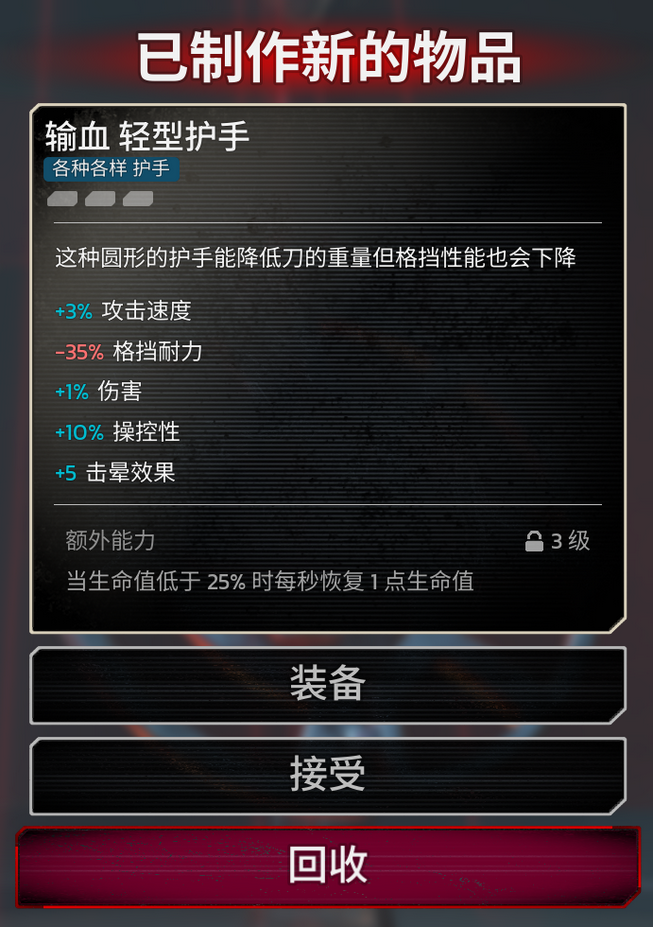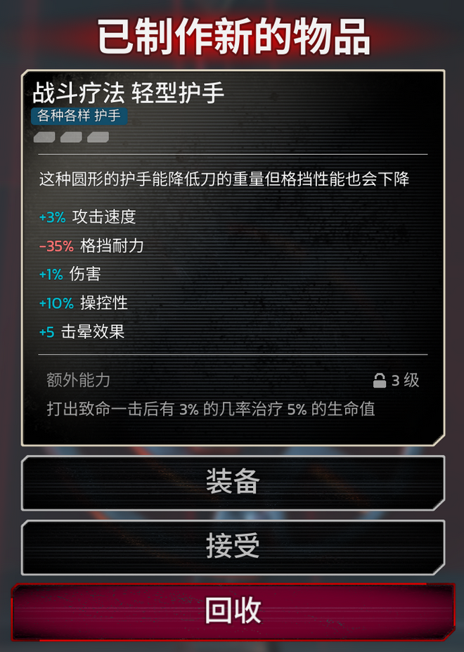 3、在摧毁一名敌人的肢体或护甲后,有3%的几率使护甲恢复到20%。