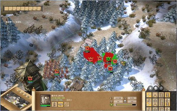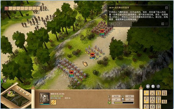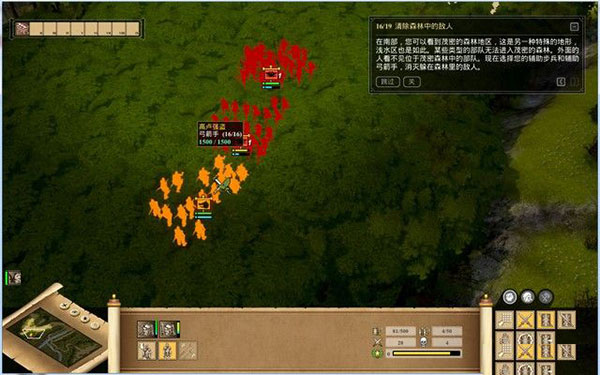 之后再让步兵和弓箭手往林子里面走,步兵在前,弓箭手在后,消灭掉树林中的敌军弓箭手。