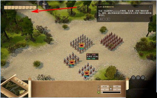首先,初始兵力是一队辅助步兵,一队弓箭手和2小队矛兵,使用鼠标点击任意一个小队之后,
