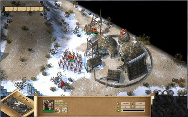 使用侦察兵的老鹰可以去侦查高地上面的情况,上面有一些弓箭手,派遣步兵先去进攻,