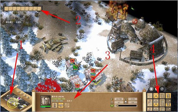 如下图箭头4所指,这里是命令栏,可以在这里对士兵下达命令。