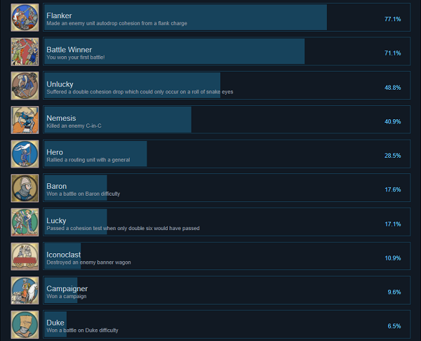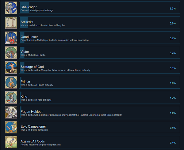 荣耀战场2中世纪成就奖杯一览