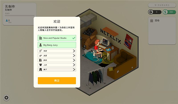 连续剧工厂中文版在刚开始,你需要简单的对自己的工作室和人物角色进行设置,给他们起个名字。