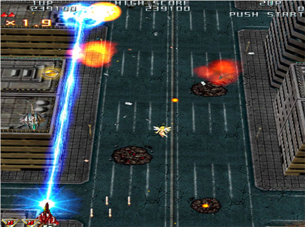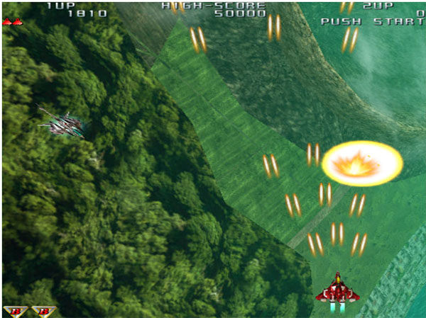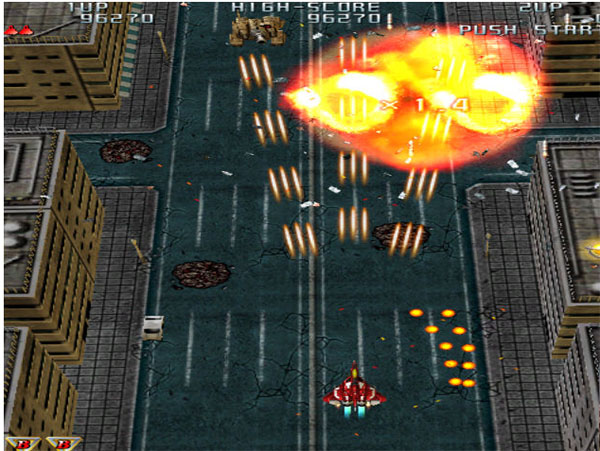 对手是大型攻击机,它会不断放出自杀飞机向你撞来。待你给它一定程度的损害後,便会分别发生两种不同的散弹,一个是天散,一个是劲吐。不难避开的。