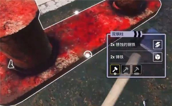 5、看到一根生锈的杆子,可以使用锤子把它给分解,可以查看到杆子的组成。