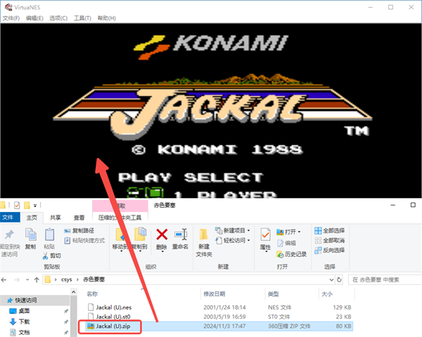 2、打开赤色要塞文件夹,将Jackal (U).zip数据直接拖入模拟器当中即可畅玩。