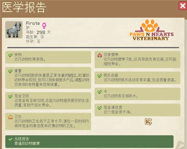 兽医办公室:兽医定期会对动物进行体检。(体检结果可以用于参考、改善饲养环境,但是随着动物数量的增多,兽医的效率就显得一言难尽。)