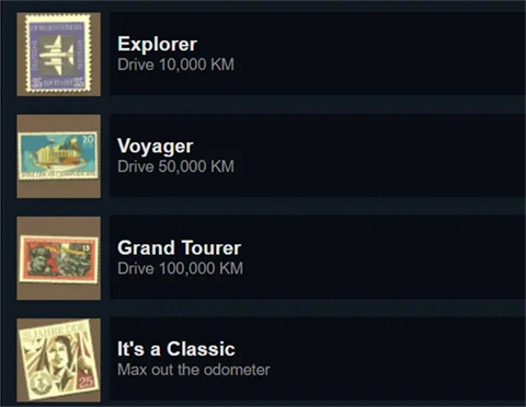 非常恶心的成就,你必须从家里的车库出发,抵达第六个城市İstanbul并且再原路返回车库,在车库睡觉后解锁成就(全程大约2-3个小时)。途中不可以退出游戏(不能存档读档),不可以按出暂停菜单(后者不确定,因保险起见笔者在完成该成就时全程没有暂停,但是绝对不能退出游戏)