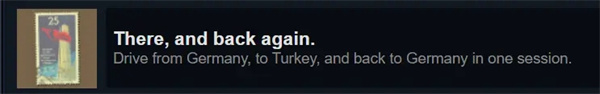 Drive from Germany, to Turkey, and back to Germany in one session. 在一个游戏进程中抵达土耳其再返回德国